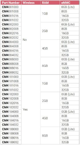 CM4 RAM and eMMC Size