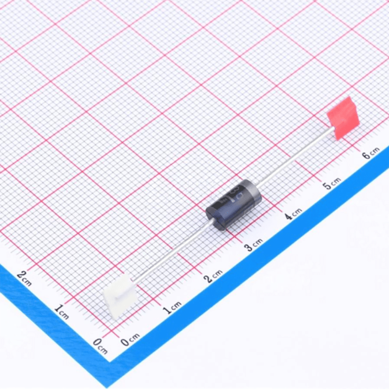 Mechanically the diode features plated, solderable leads and a compact DO-201AD body, with thermal derating behavior shown for various lead-to-heatsink conditions in the datasheet. The part is designed for reliable thermal performance when mounted appropriately (lead length and heat-sink practices affect the allowable dissipation), and the datasheet gives thermal resistance and derating curves to help designers maintain safe junction temperatures.