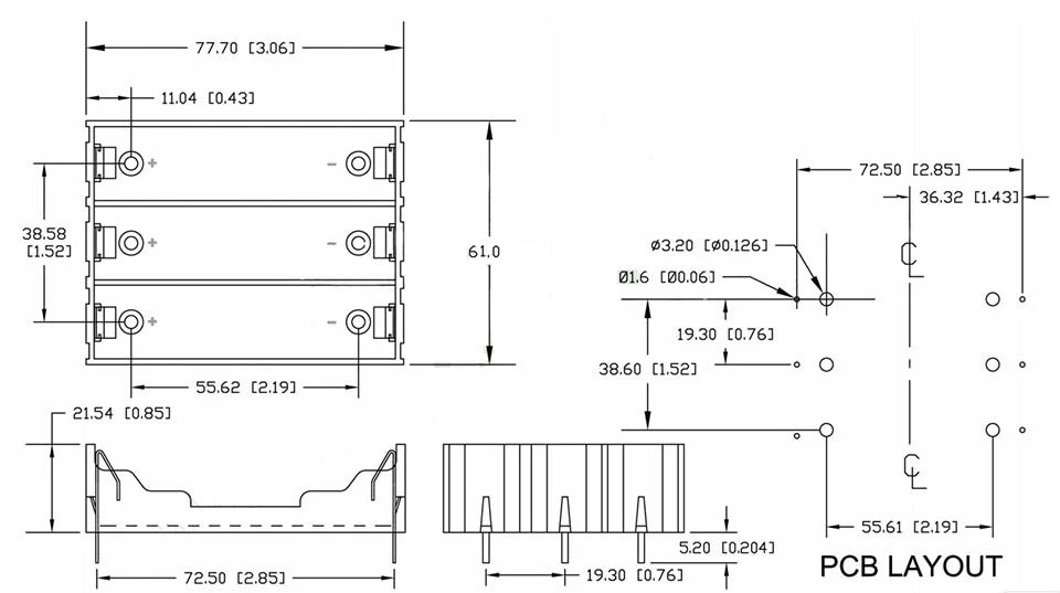 The 3-slot 18650 Battery Case With Pins can be used in a variety of applications such as building a flashlight or simply connecting the pins to leads in electronic projects. The battery case can be connected in series or parallel.