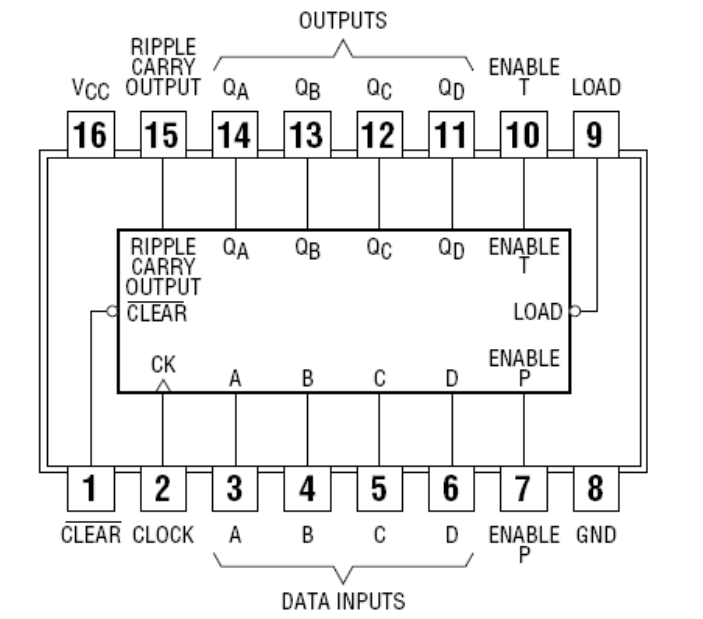 74161 IC Synchronous 4-Bit Counter (Direct Reset)