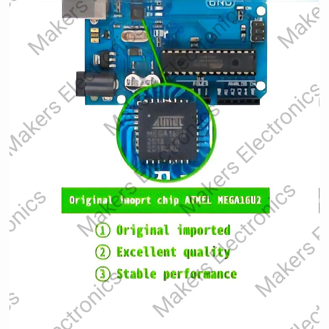 The Arduino Uno Rev3 is a versatile and user-friendly development board based on the ATmega328P microcontroller. It serves as an ideal starting point for beginners in electronics and coding, providing a robust platform for learning and prototyping. Featuring 14 digital I/O pins, 6 analog inputs, and multiple communication interfaces, the Uno Rev3 supports a wide range of applications—from simple LED blinkers to complex IoT projects. Its open-source design and extensive community support make it a top choice for hobbyists, educators, and professionals alike.