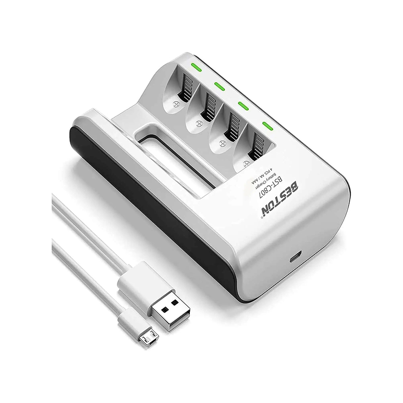 The BST-C807’s design prioritizes ease of use: USB charging input allows you to power it from phone adapters, power banks, or computer USB ports. Its four-slot capacity gives flexibility: you can charge from 2 to 4 AA/AAA cells at once. It is light and portable, suitable for travel or desktop use. The included LED indicators and slot layout make it intuitive to load and monitor battery charge cycles. Many product listings also bundle batteries, making it a ready-to-go kit.