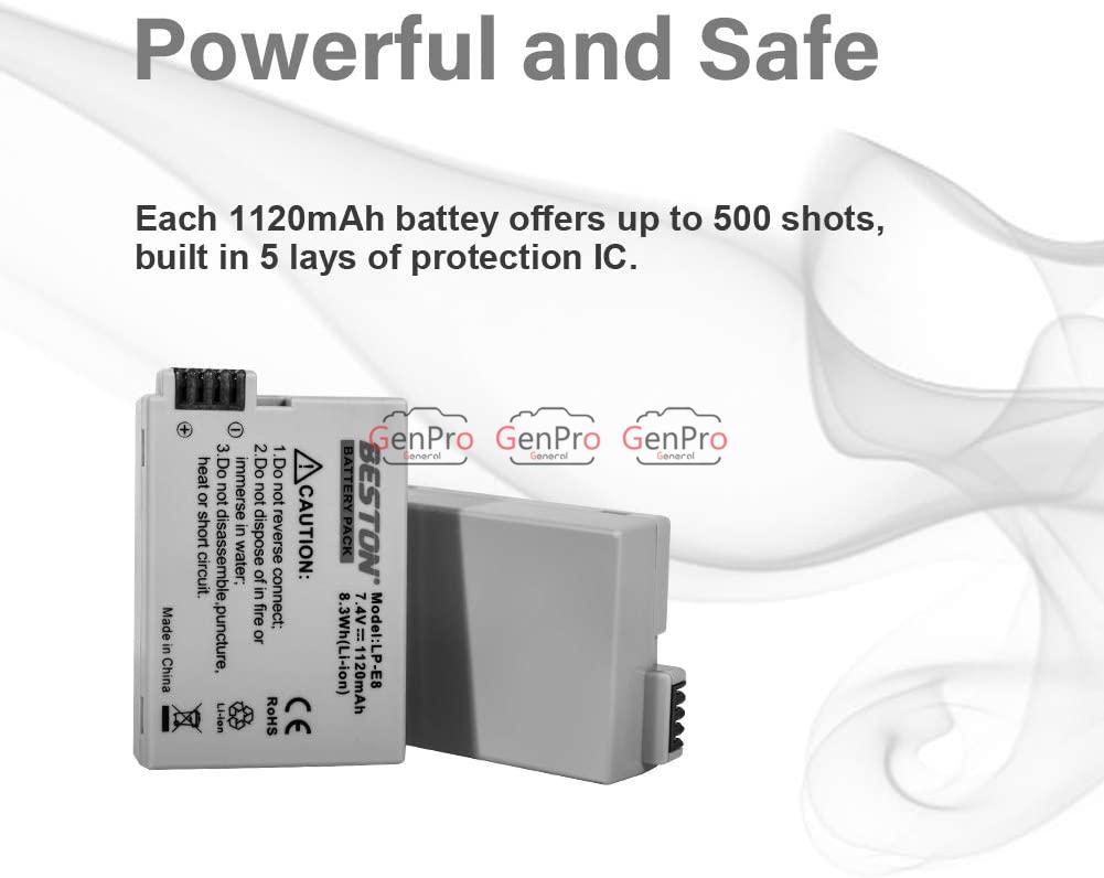 Engineered to meet the demands of both amateur and enthusiast shooters, the BESTON LP-E8 battery is compatible with numerous EOS Rebel series models including the T2i, T3i, T4i, T5i and Canon EOS 550D/600D/650D/700D, among others. The battery’s design incorporates multiple built-in protection systems that safeguard against issues like over-charging, short circuits, and excessive heat, adding an extra layer of safety and peace of mind while in use or charging. This makes it a trusted choice as a replacement or backup to your original Canon battery.