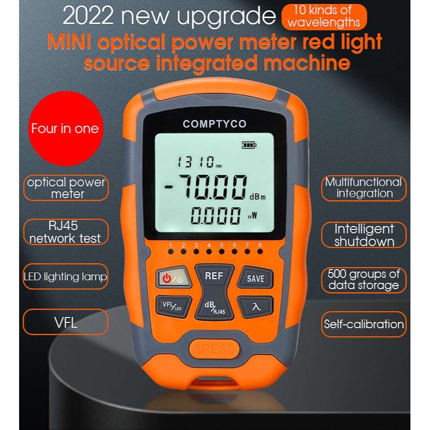 - Multifunctional Design: Integrates an Optical Power Meter (OPM), Visual Fault Locator (VFL), LED light source, and RJ45 network cable tester into a single compact device.