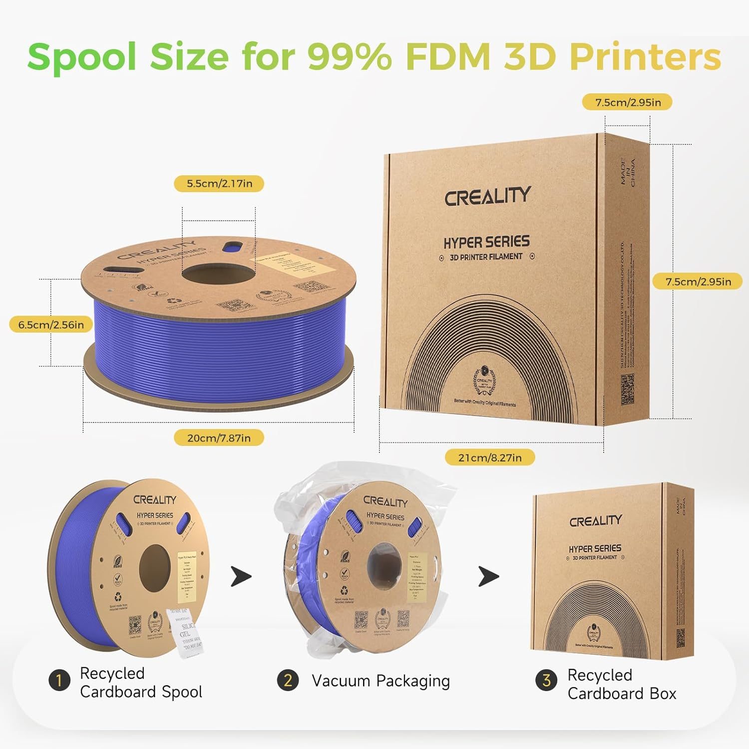 The Creality Hyper PLA Filament is a premium 3D printing material that offers precision, reliability, and exceptional print quality. Its low warping, strong layer adhesion, wide colour palette, and universal compatibility make it an excellent choice for a wide range of 3D printing applications, from art and design to functional prototypes and educational projects. Plus, its eco-friendly and user-friendly features add to its appeal, making it a valuable addition to any 3D printing toolkit.