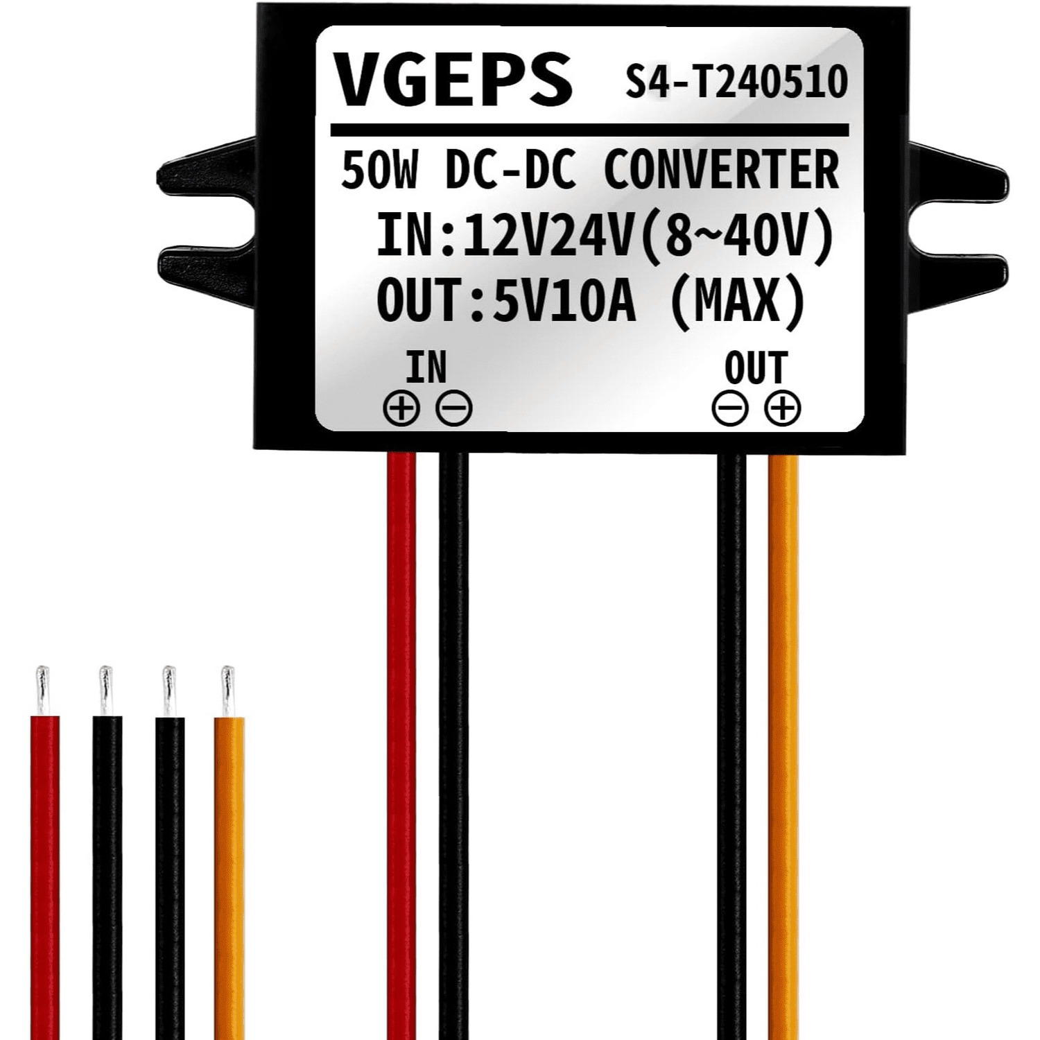The S4-T240510 DC-DC Converter is a high-efficiency, compact power module designed to step down a wide input voltage range of 12-24V (operable between 8V-40V) to a stable 5V output. With a maximum current of 10A and a power output of 50W, this converter is perfect for powering a variety of electronic devices and systems. Its robust, waterproof design ensures reliable performance in diverse environments, making it ideal for automotive, industrial, and DIY electronics projects. The module features clearly marked input and output terminals with pre-attached wires for easy integration, along with intelligent protection mechanisms to safeguard against electrical issues. Whether you’re powering LED lights, microcontrollers, or automotive accessories, the S4-T240510 delivers consistent and efficient power conversion.