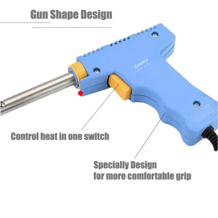 The Dual Heat Soldering Iron Gun 20-200W is a professional-grade soldering tool engineered for efficient and precise work in electronics, jewelry, and repair tasks, with adjustable dual power modes for optimal control. Equipped with a ceramic heater, it offers rapid heating in high-power mode (200W) activated by pulling the trigger, while the low-power mode (20W) maintains standby temperature for energy efficiency and reduced wear. The pistol-grip design, developed through ergonomic studies, provides a comfortable hold with an insulating handle to prevent heat transfer and fatigue during extended sessions.