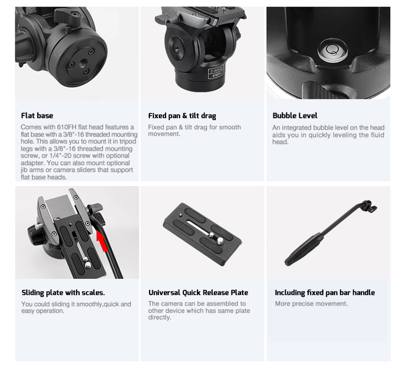 The E-Image MA600 4-Stage Aluminum DSLR Camera Monopod with 610FH Fluid Head is a high-performance camera support system engineered to provide superior stability and smooth panning for professional photographers and videographers. Whether you are shooting action scenes or capturing still images, this monopod offers an ideal solution for anyone who requires portability, stability, and precise control during their shoots.