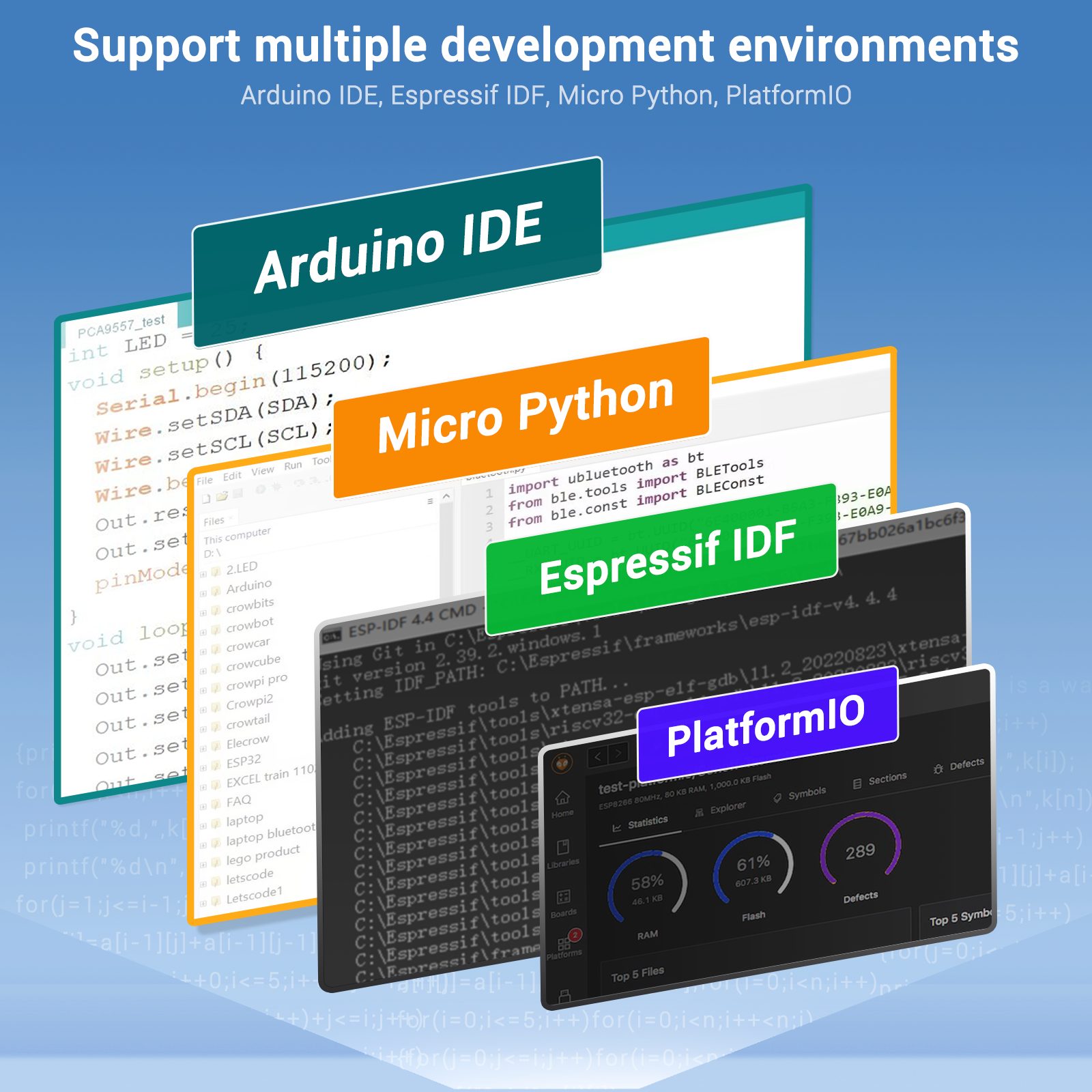 - Support development environment Arduino IDE, Espressif IDF, PlatformIO, Micro python and compatible with LVGL graphics library;