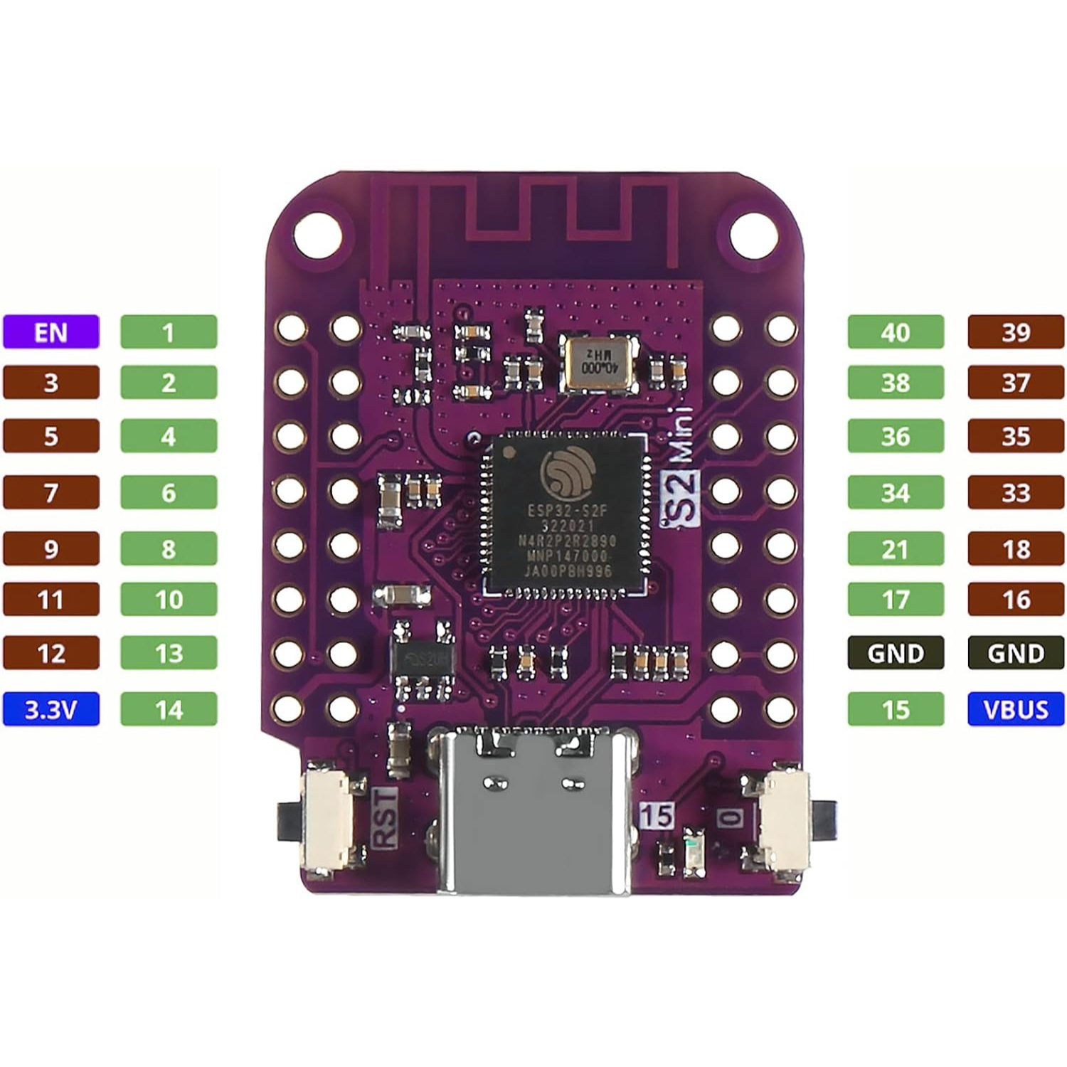 - 1x ESP32-S2 WEMOS S2 Mini Development Board.