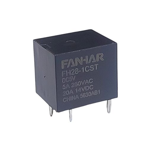 The FANHAR FH28-1CST-DC5V is a compact and reliable power relay designed for automotive and industrial applications. With a 5-pin configuration, high switching capability, and excellent mechanical endurance, it ensures stable performance in circuits requiring reliable control of AC and DC loads. Its plastic-sealed construction provides environmental protection, making it suitable for challenging conditions.