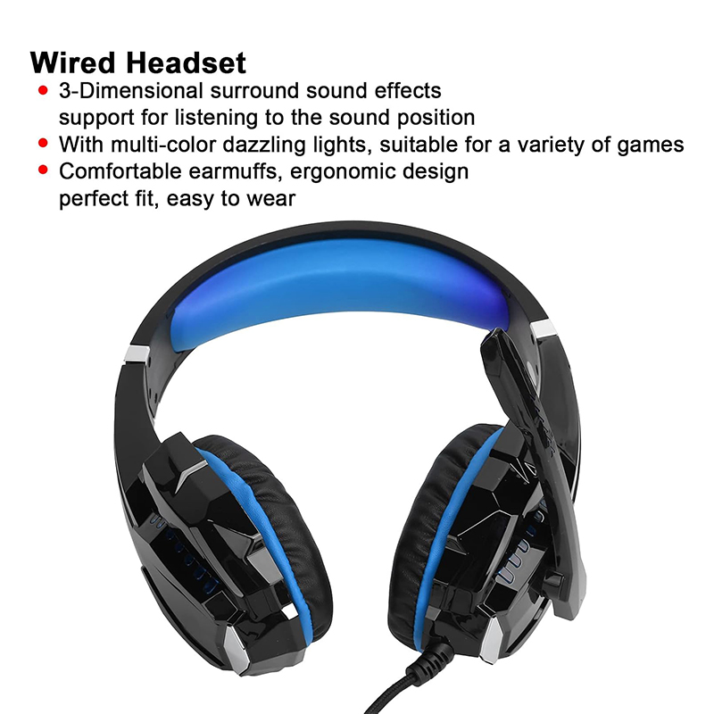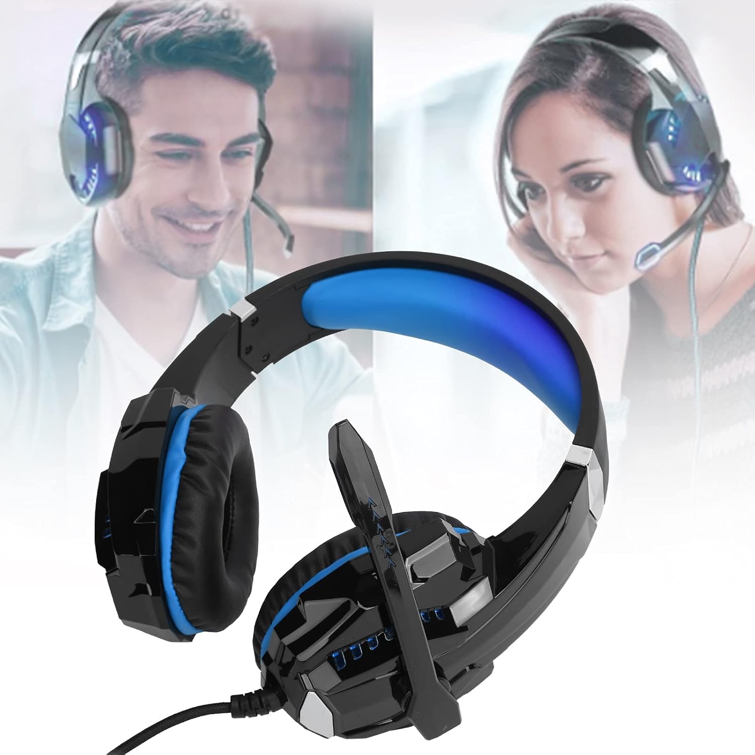 Black & blue gaming headset with integrated mic delivers immersive sound and clear voice communication, making it ideal for PC gaming & chat.