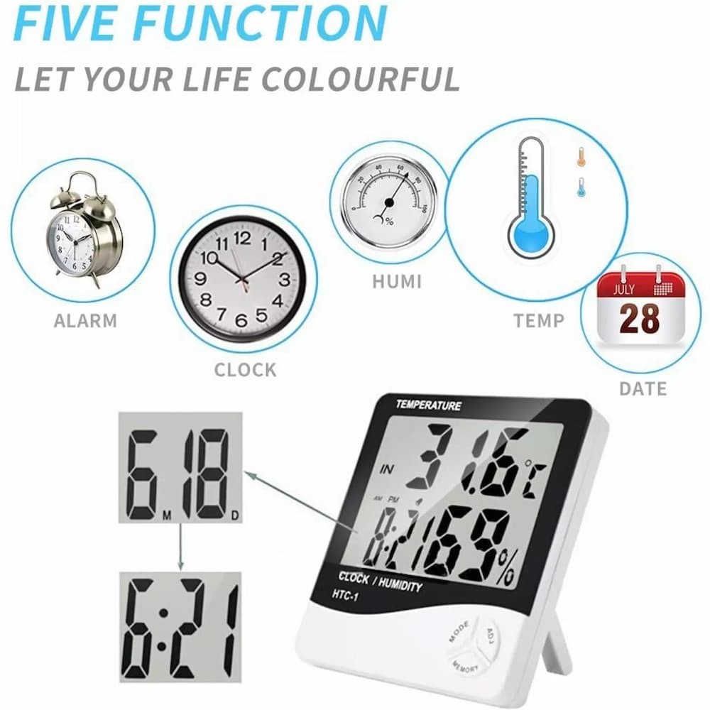 - 1 x HTC–1 Digital Thermometer with Humidity Indicator & Clock