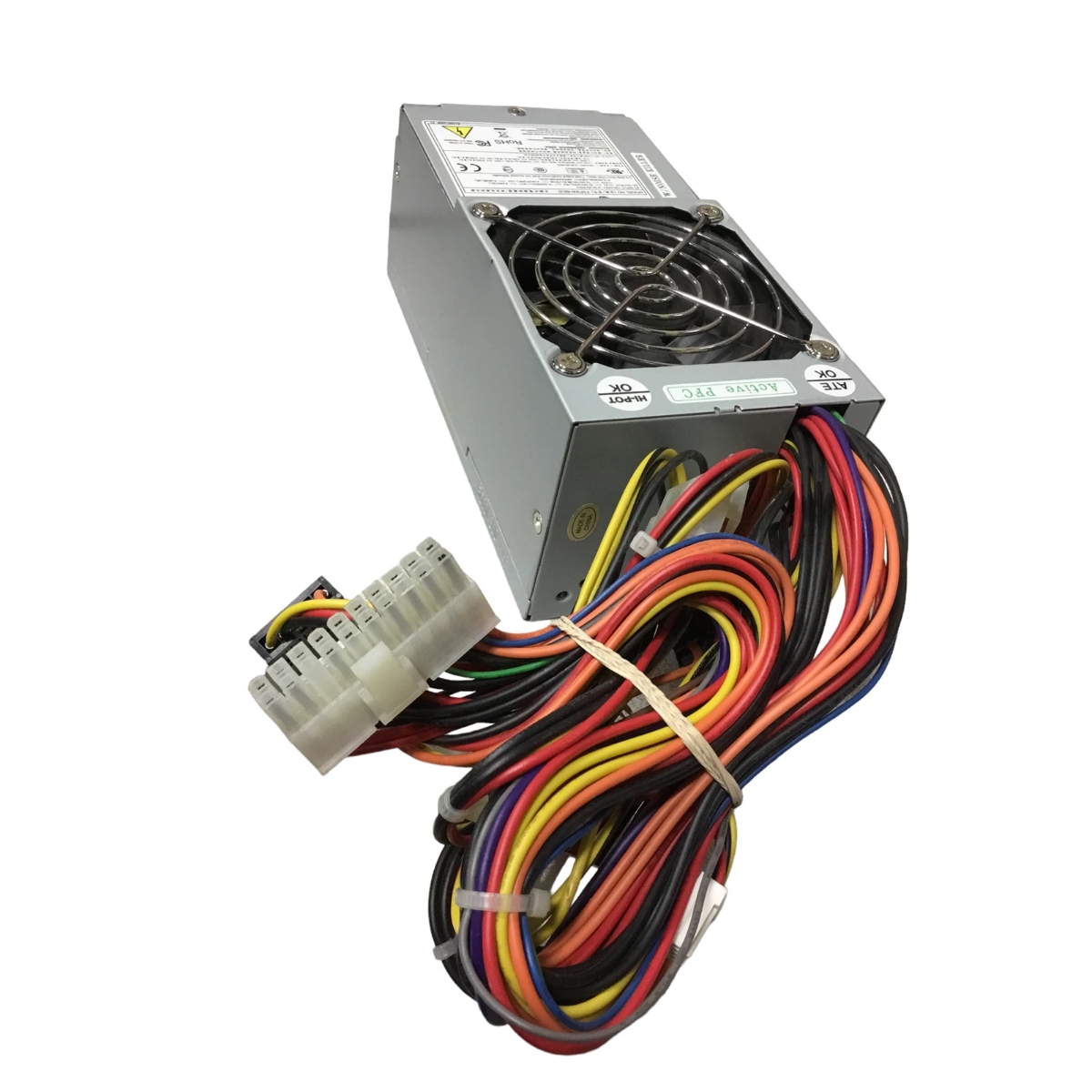 This PSU is designed for use with systems requiring a standard ATX power supply and provides essential power rails, including +12V, +5V, and +3.3V. Its compact form factor and multiple connectors, including a 20+4 pin ATX connector, make it versatile and easy to integrate into compatible systems.