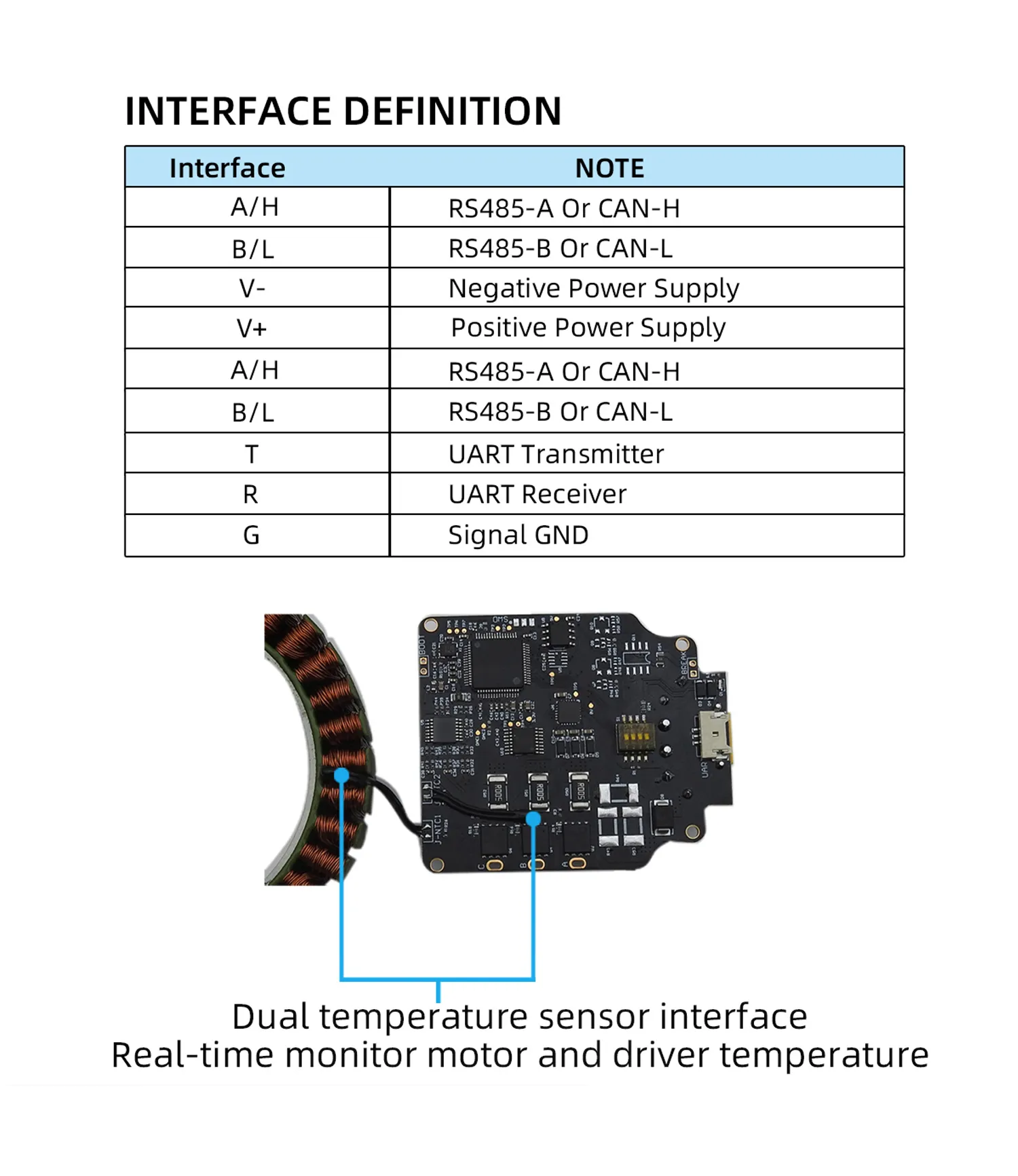 - Dual Encoder 18-bit motor + 14-bit reducer for high-resolution feedback.