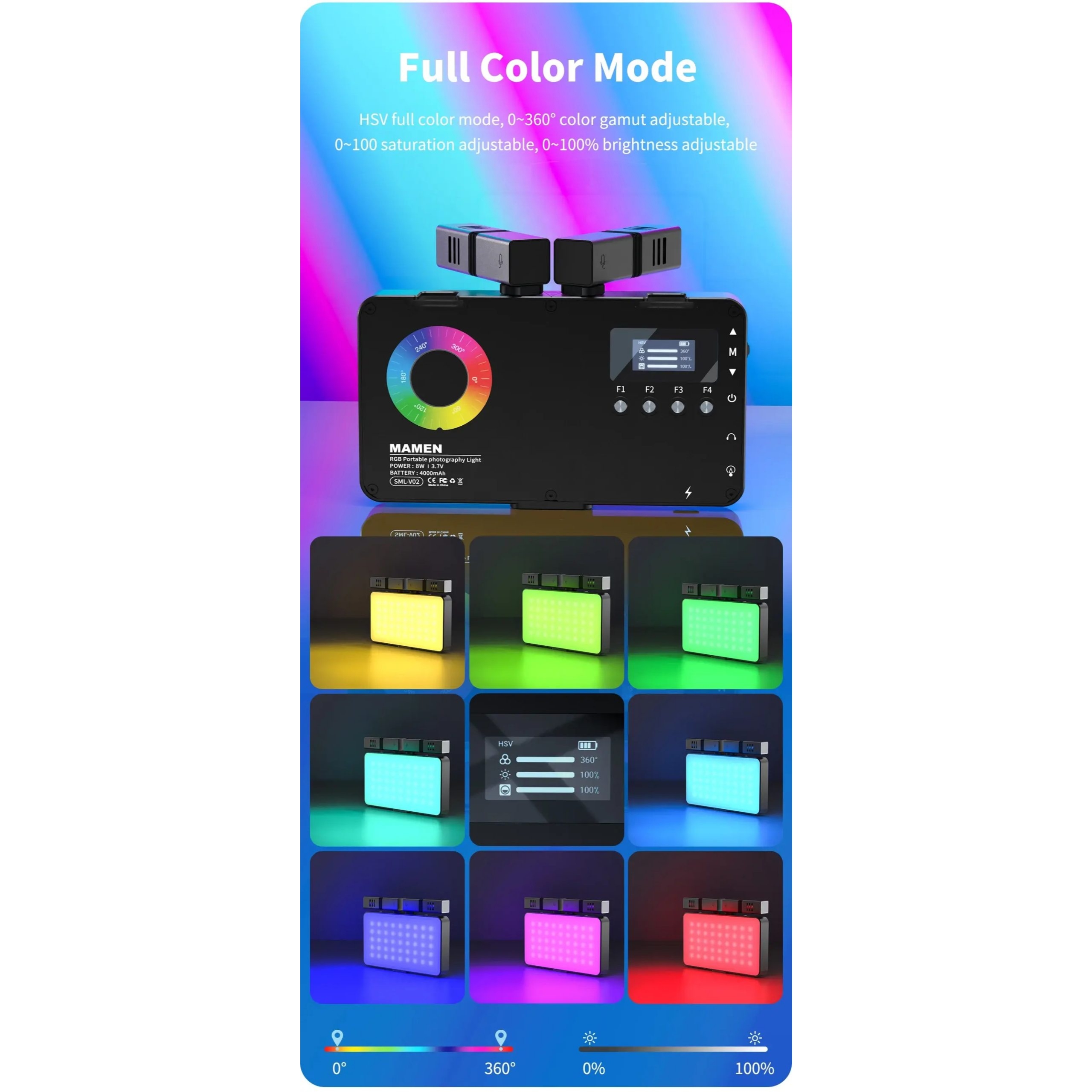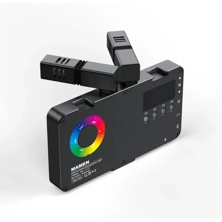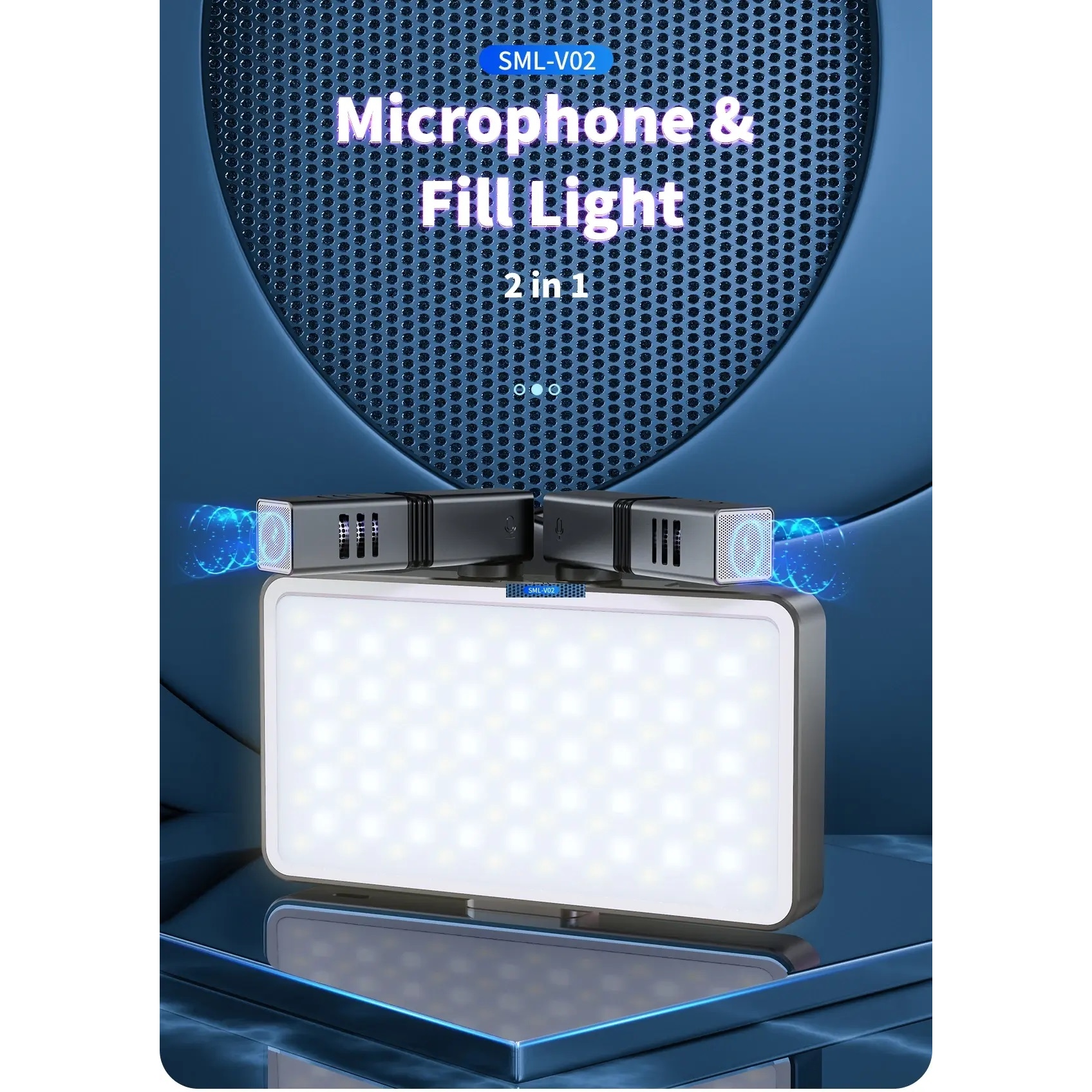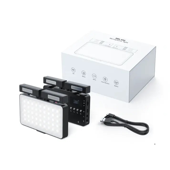 The MAMEN SML‑V02 Professional Double Microphone Light Pocket is an integrated multimedia tool designed for content creators, vloggers, and mobile videographers seeking simultaneous high‑quality audio capture and versatile lighting control. This compact, pocket‑sized unit combines dual professional microphones with an RGB and bi‑color LED light panel, delivering comprehensive audiovisual support for mobile phones, cameras, and streaming setups. The microphones are capable of stereo, mono, front, and rear pickup configurations, enabling adaptable sound recording performance with a sensitivity of approximately ‑42 dB and a signal‑to‑noise ratio exceeding 72 dB, making it suitable for both indoor and outdoor use.