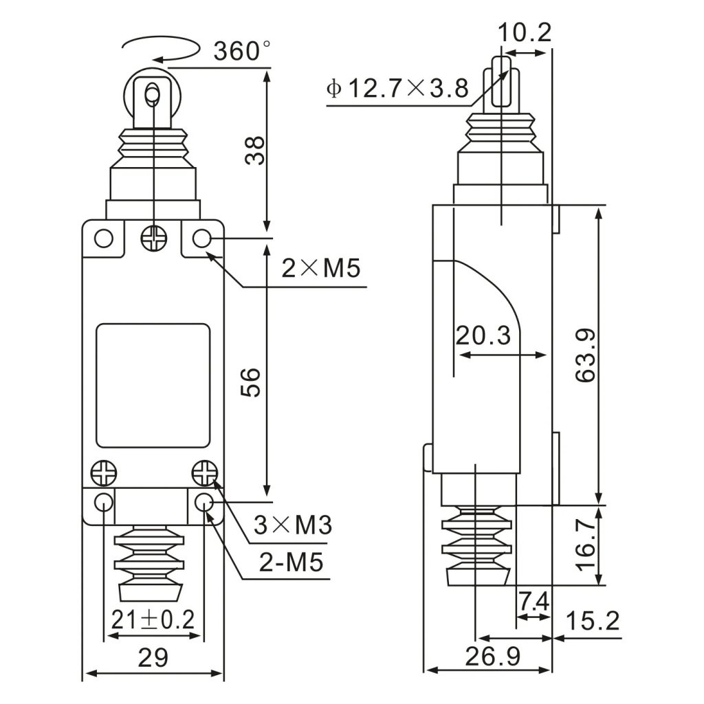 Built with dust-proof and splash-resistant sealing, the ME-8112 is suited for workshop, manufacturing line, and automated equipment settings where environmental contaminants like dust and moisture are present. The straight roller offers a smooth, linear motion interface, ensuring reliable activation even with slight contact pressures. This design supports consistent mechanical interaction between the actuator and the part being monitored, reducing false triggers and improving system reliability.