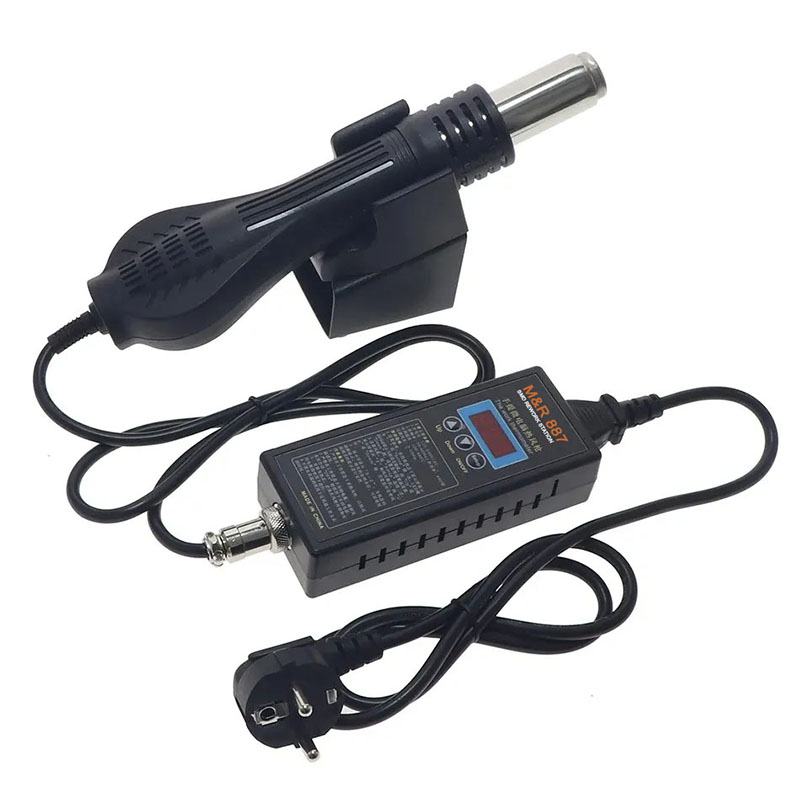 The M&R 887 Digital Hot Air Gun SMD Rework Station is a high-performance tool designed for precision soldering and desoldering of surface-mount devices (SMDs). Equipped with a digital LED display, it offers accurate temperature control within a range of 100°C to 480°C. The station features a turbine dryer delivering up to 120 liters per minute of airflow for efficient heat distribution. With microcomputer control, it ensures quick warming and stable operation, making it an excellent choice for professional electronics repair and hobbyist projects.