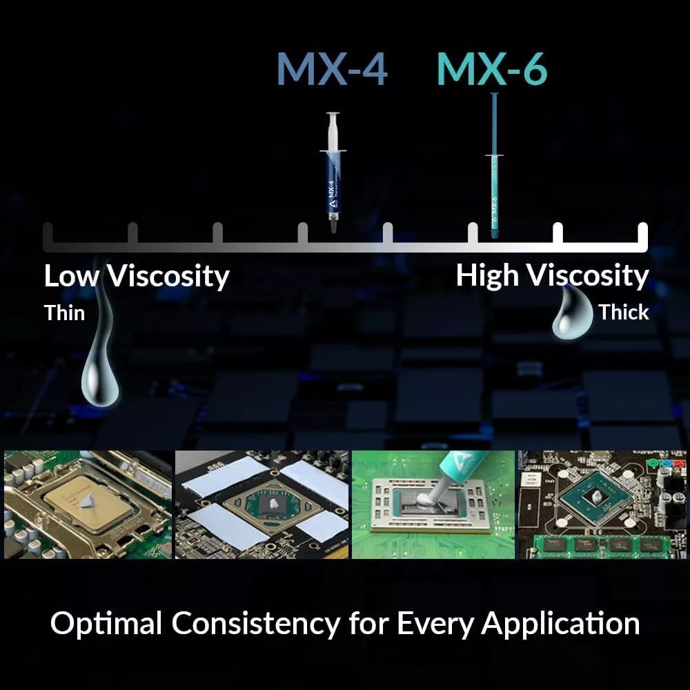 The MX-6 ARCTIC Grey High Copy Thermal Paste (2g) is a high-performance thermal compound designed for efficient heat dissipation in electronic components. This thermal paste is formulated to enhance thermal conductivity, ensuring optimal heat transfer between the processor and heatsink. With its grey-colored, non-conductive composition, it offers safe application without the risk of short circuits. The MX-6 High Copy variant mimics the performance of premium-grade thermal pastes, making it a cost-effective choice for gamers, PC builders, and overclockers looking to maintain stable temperatures. Its 2g packaging provides ample quantity for multiple applications, making it ideal for CPU, GPU, and other cooling solutions. The paste features a low viscosity and smooth consistency, allowing for easy spreading and even coverage without excessive spillage.