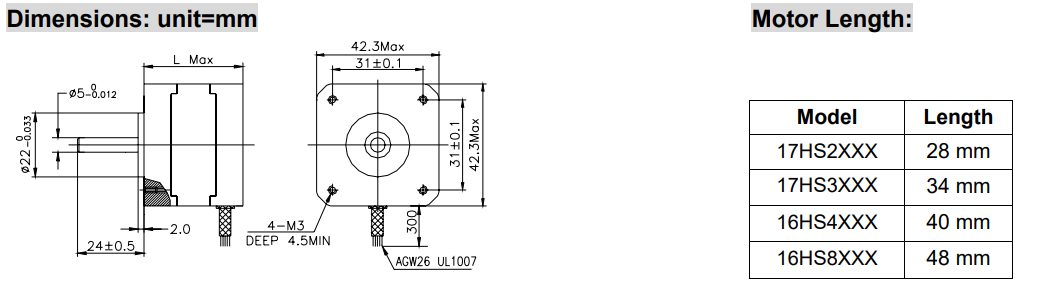 | Motor Dimensions | 42mm × 42mm × 48mm |