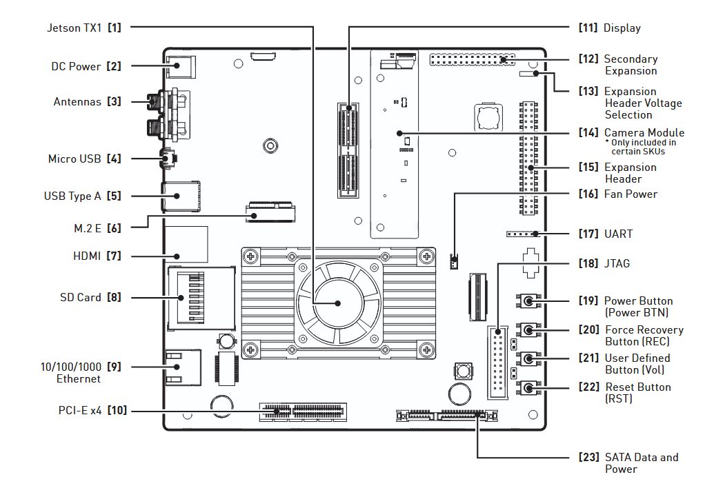 - 1x NVIDIA Jetson TX1 Developer Kit carrier board