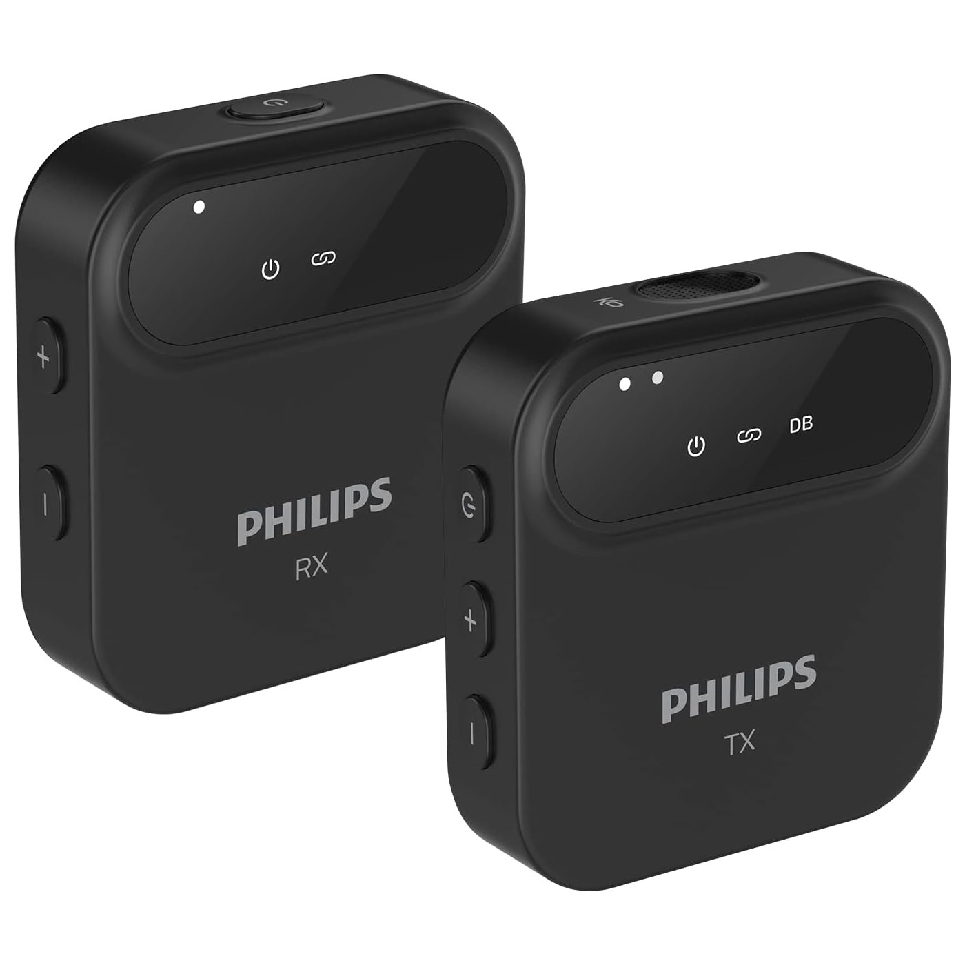 The Philips DLM3538C 2.4GHz Wireless Microphone is a professional-grade wireless microphone system designed to deliver reliable, high-quality audio capture for a wide range of applications. Utilizing a 2.4 GHz wireless transmission band, this system enables stable signal delivery with minimal delay and a transmission range of up to approximately 164 ft (50 m) without obstruction, making it suitable for both indoor and outdoor recording scenarios. Its omnidirectional microphone design supports 360° sound collection, ensuring consistent audio pickup regardless of microphone orientation. The built-in DSP noise cancellation technology further enhances audio clarity by reducing ambient noise and interference, delivering crisp and intelligible voice capture.