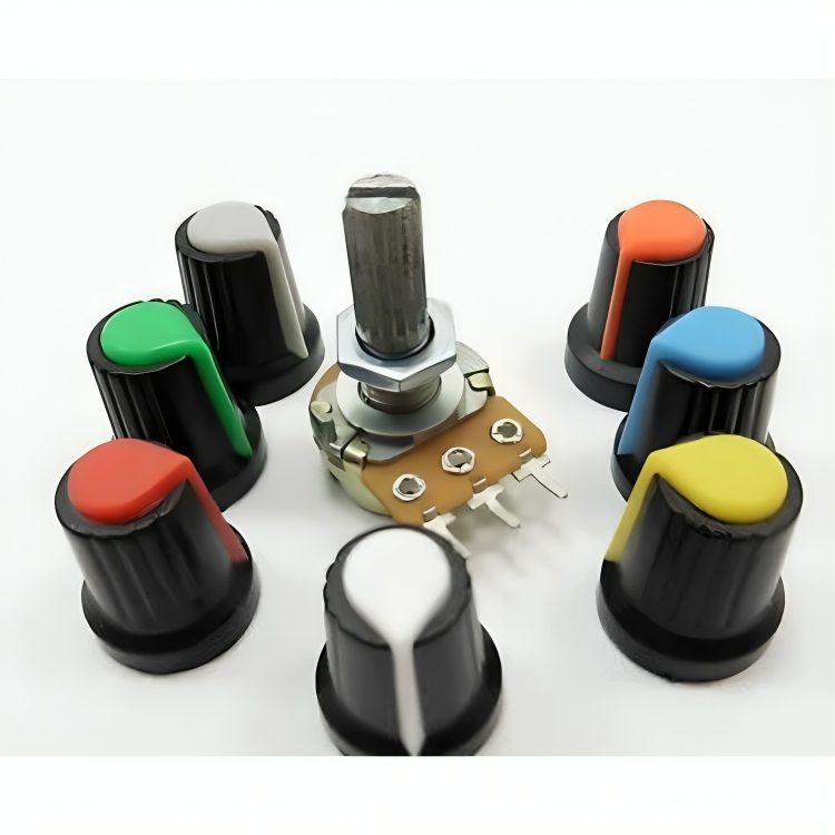 - Plastic control knobs are to be assembled into potentiometers to facilitate rotation.