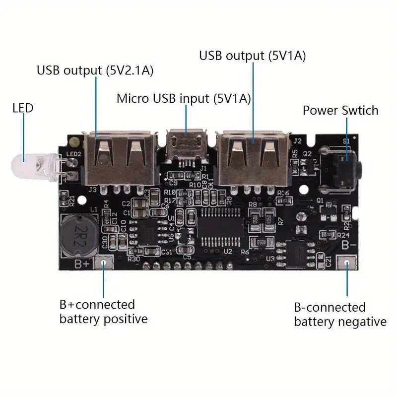 - Supported battery type: Li-ion batteries 3.7 (18650, 1-6 pcs in parallel)