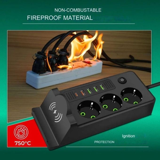 - Advanced Safety Features: Engineered with surge protection, overload prevention, and fireproof materials (up to 750°C), ensuring the safety of connected devices.