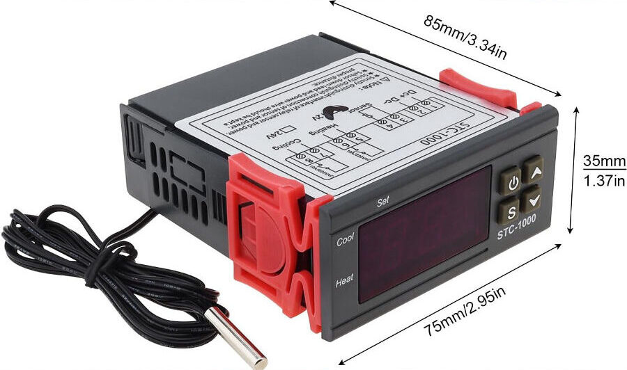 STC-1000 HW-524A is a 12V digital temperature controller with dual relay output for heating and cooling, ideal for aquariums, incubators, and DIY projects.
