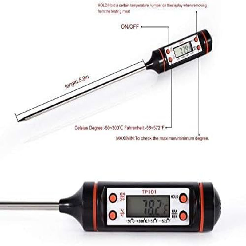 - Stainless Steel Probe Ensures durability, hygiene, and suitability for food and laboratory use.
