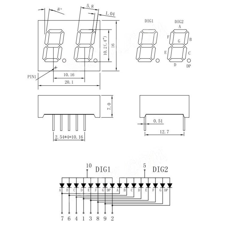 Buy NowTwo Digit 7 Segment Red Led Display 0.4 inch Common Anode 4021BS