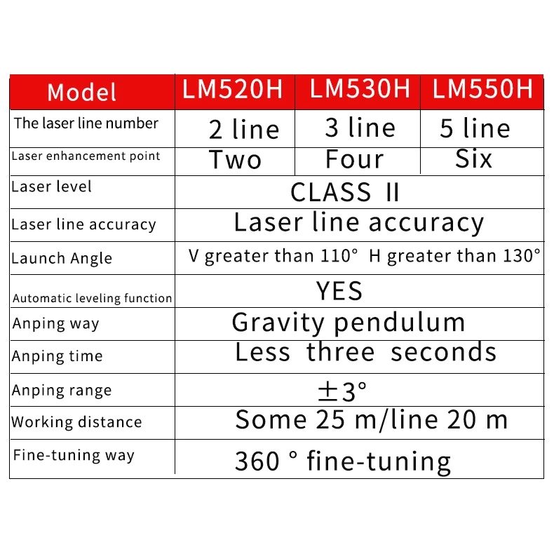 - Laser Line Accuracy: ± 3mm@10m