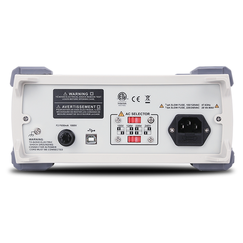Built‑in USB‑device connectivity lets the meter interface with PC control software for remote viewing and data logging. Global mains compatibility (90–264 VAC) ensures operation worldwide. Its benchtop form factor, complete with a tilt stand and replaceable fuses, makes it a versatile tool for R&D, QC, education and field maintenance.