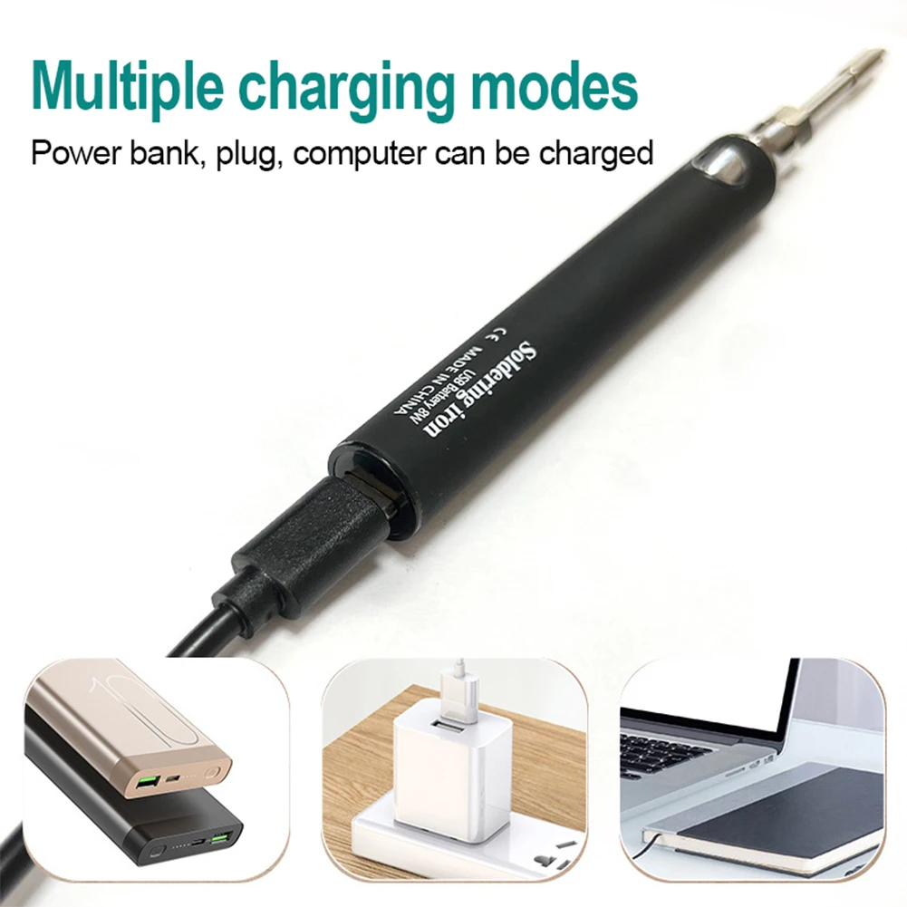 - USB interface charging soldering iron, small size, light weight, compact packaging and easy to carry.