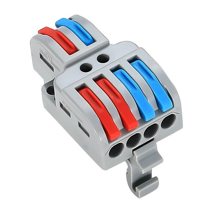 - 1x WAGO Din Rail Wire Connector 2 In 4 Out.