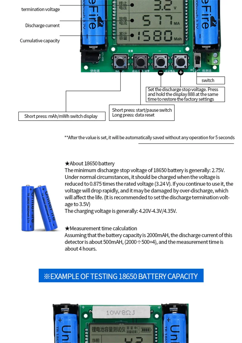 - Product Name: 18650 lithium battery capacity tester